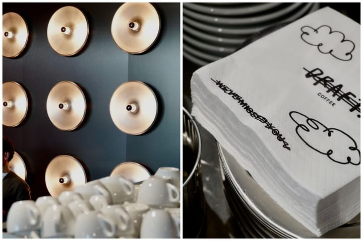 For us, the napkins are of essence - why? Because our cafés have a very unique design language that is very precise and can be almost seen as “strict” - this is why our different brand elements are more playful, such as our hand drawn cloud logo, the name (DRAFT. stands for something unfinished) and our napkins which are a nod to playfulness.