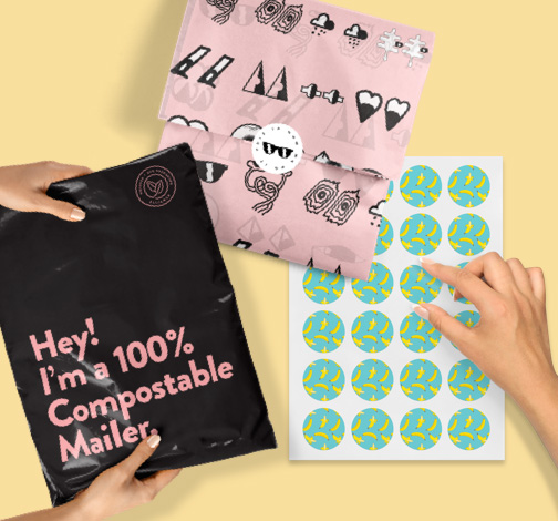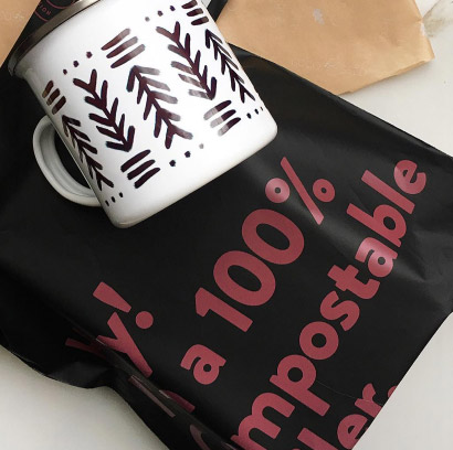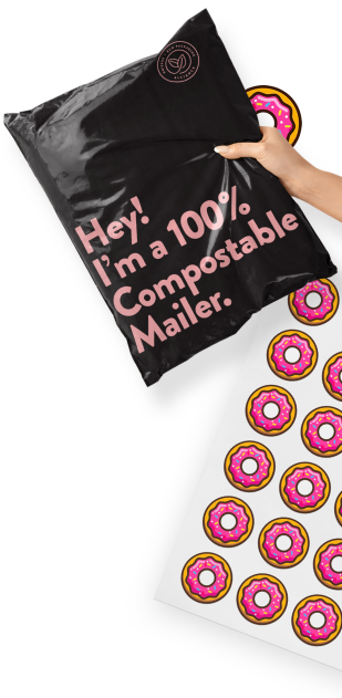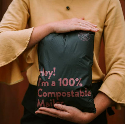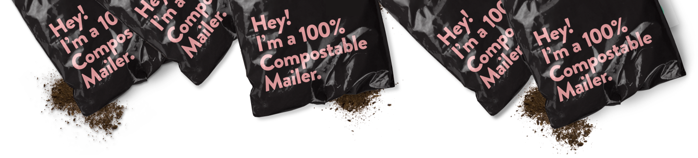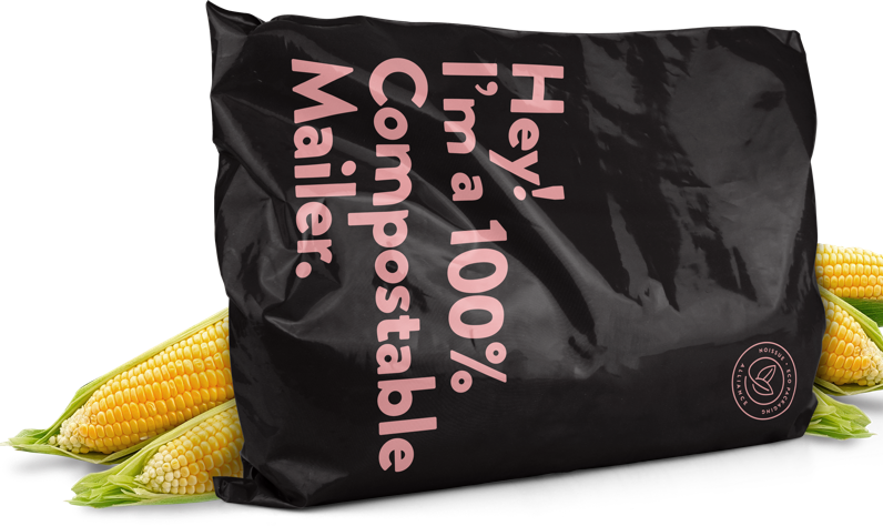 Our compostable mailers are made from a combination of PBAT, a bio based polymer which is compostable, and PLA which is made up of plant materials such as regular field corn and wheat straw. Our use of PLA makes up barely 0.05% of the annual global corn crop, making it an incredibly low-impact resource. Read on for further certifications and information.